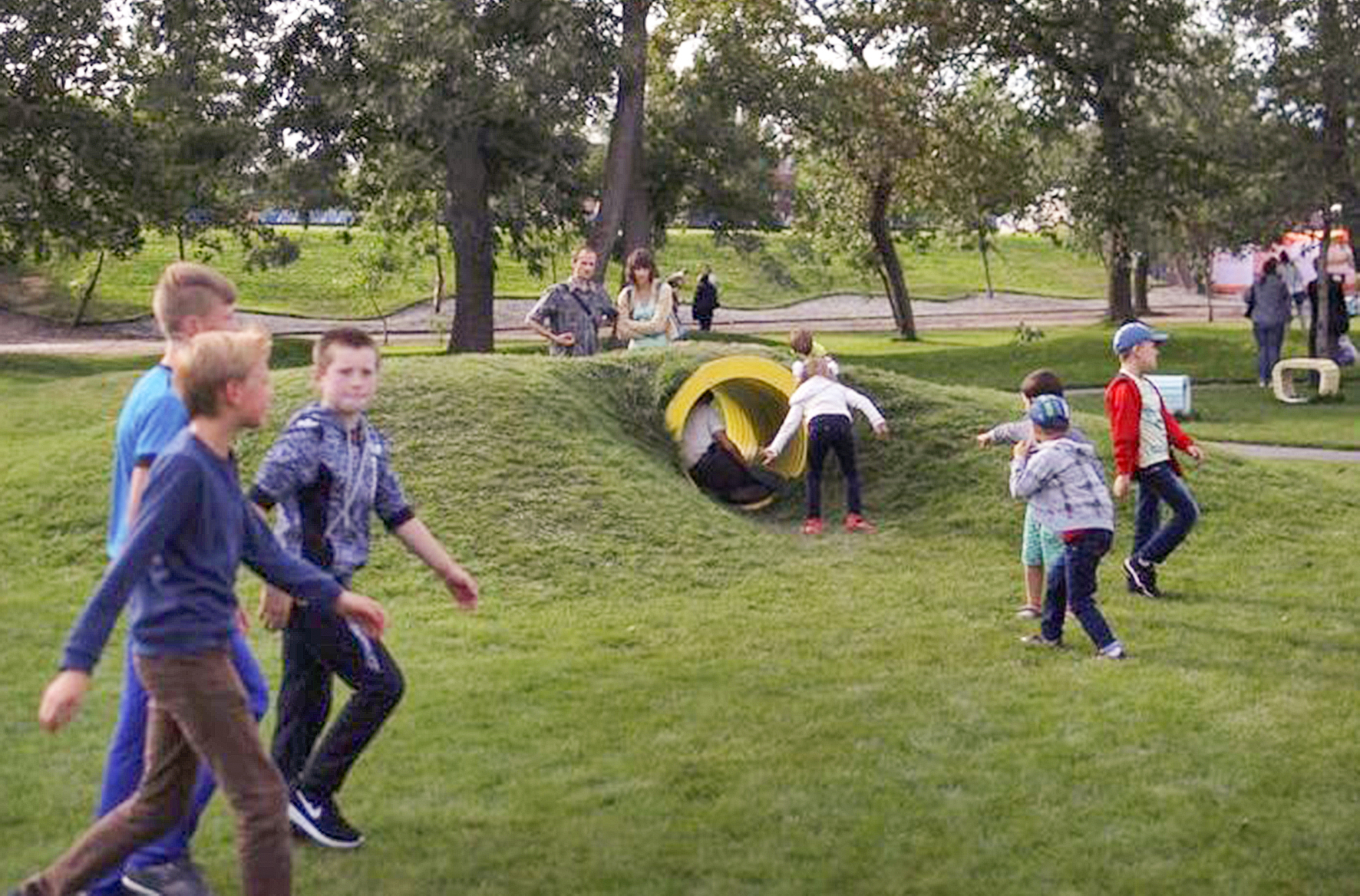 Основою дизайну став лаконізм та функціональність, проте парк насичений інноваційними елементами: “сухий” фонтан, роледром, геопластика (пагорби, вкриті травою, з маленькими тунелями), дитячий екомайданчик. Задіяно три види освітлення, доріжки вимощені плиткою та залишені в старих межах для комфорту пересування.