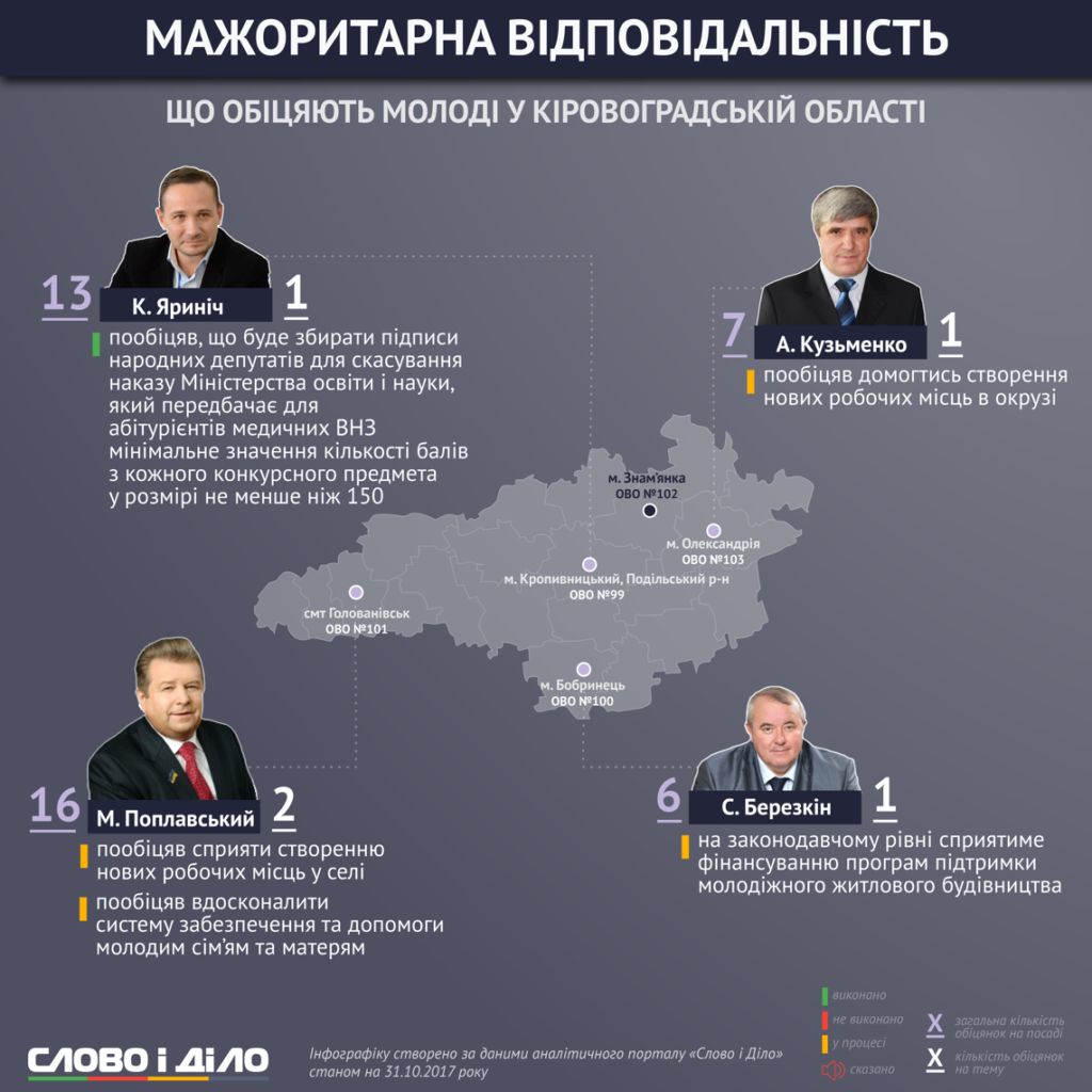 Джерело: https://ru.slovoidilo.ua/2017/11/01/infografika/obshhestvo/kak-nardepy-mazhoritarshhiki-kirovogradskoj-oblasti-vypolnyayut-obeshhaniya-molodezhyu