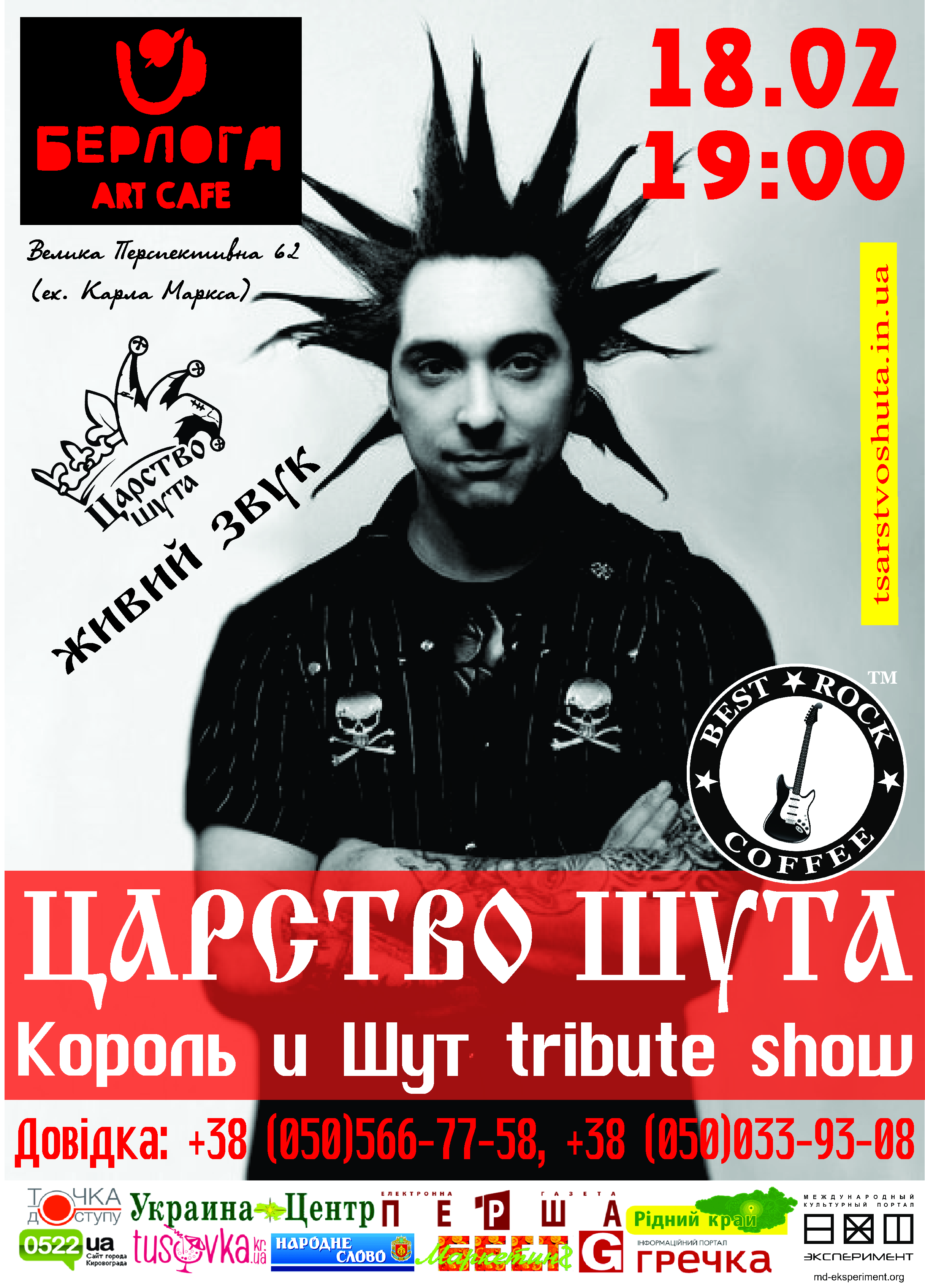 Триб’ют-проект пам’яті М.Ю.Горшеньова на багаточисельні прохання знову у Кропивницькому. 18 лютого в арт-кафе “Берлога” більше 2-х годин звучатимуть безсмертні хіти “Короля и Шута” і не залишать байдужим жодного прихильника творчості Михайла Горшеньова. Початок: 19:00.
