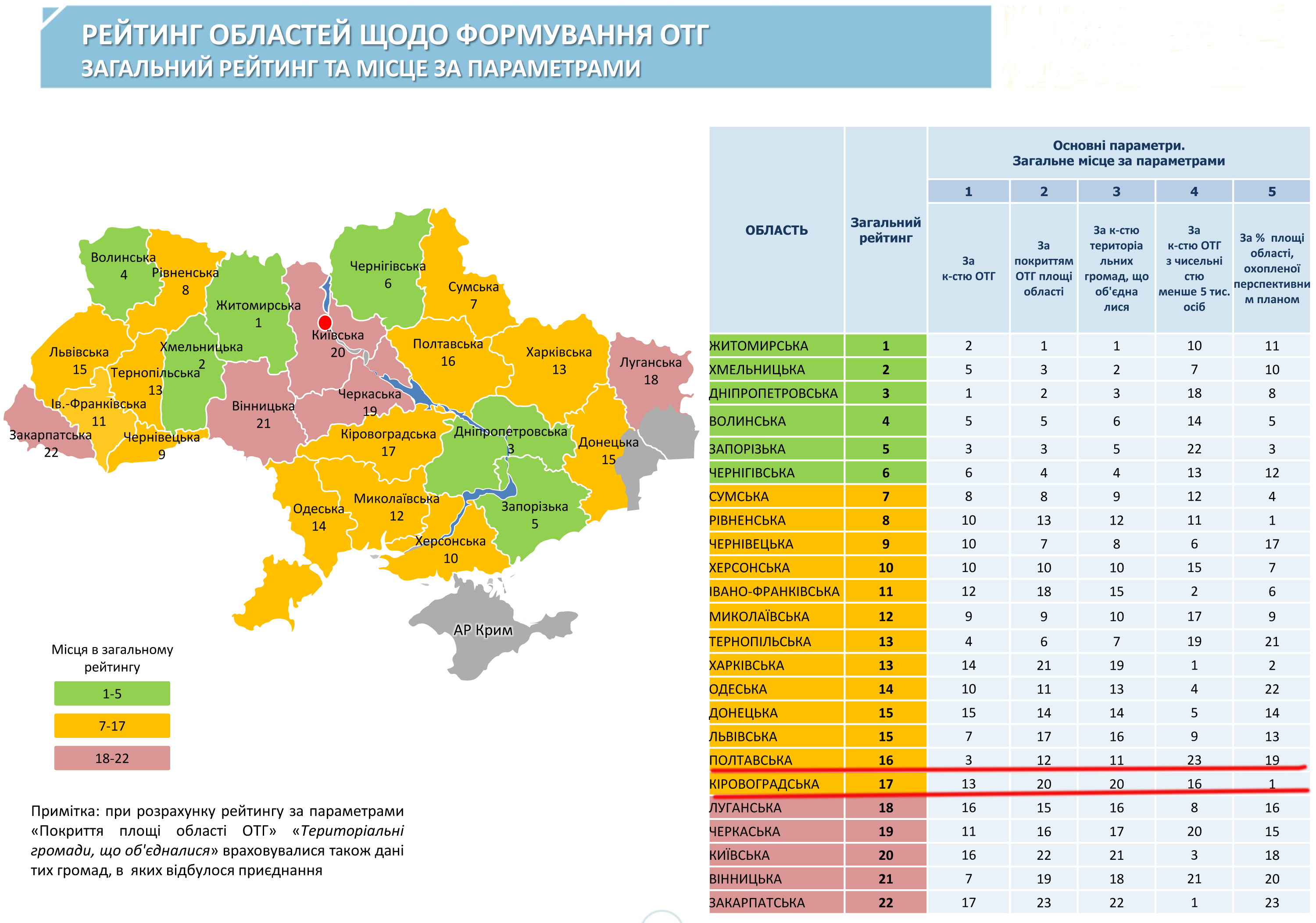 Моніторинг процесу децентралізації влади та реформування місцевого самоврядування формується за кількома параметрами, у тому числі за таким параметром, як затверджений перспективний план. І тут лише дві області, Рівненська та Кіровоградська, забезпечили перспективні плани, які покривають 100% території областей.