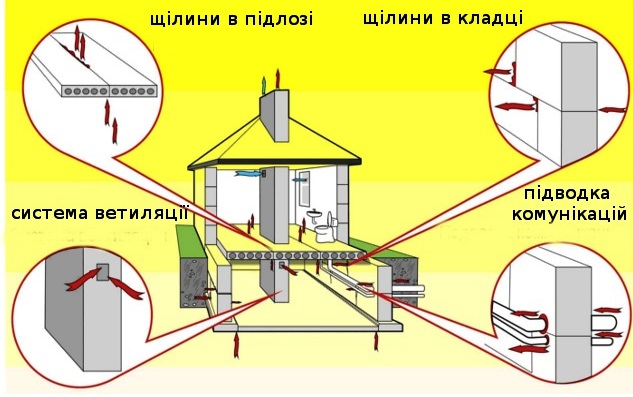 - будівельні матеріали та огороджувальні конструкції (стіни, фундамент, перегородки);