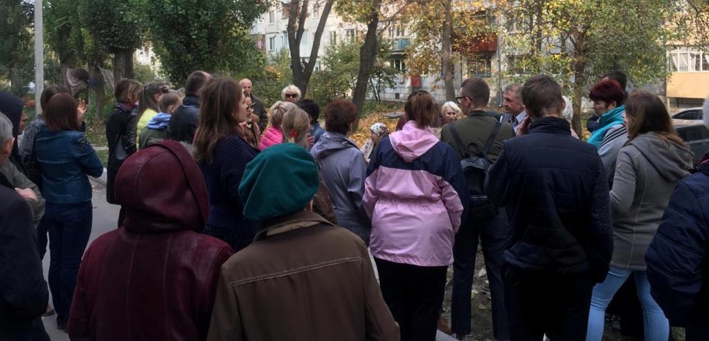 Почувши про наміри підприємців, жителі згаданого будинку звернулися до тодішнього міського голови Володимира Пузакова, аби той відповів, чи дійсно є рішення про виділення землі під забудову і знесення зелених насаджень.