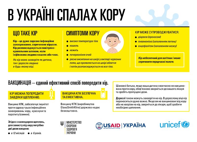 Єдиним надійним захистом від кору є своєчасна імунізація. На даний час всі заклади охорони здоров’я Кіровоградщини забезпечені вакциною проти кору.