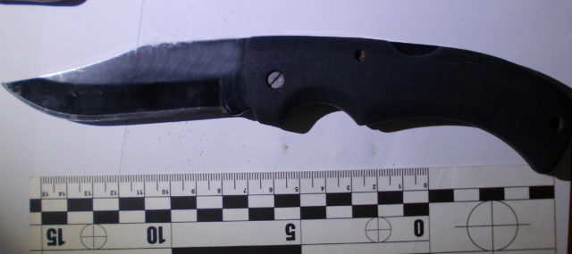 При особистому обшуку поліцейські виявили та вилучили у підозрюваного речовий доказ кримінального правопорушення – ніж.
