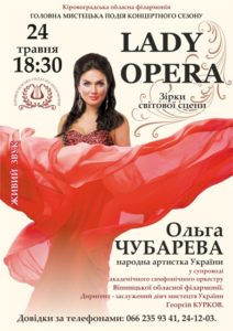 24.05 о 18.30  обласна філармонія запрошує на «Травневі музичні зустрічі» – концерт народної артистки України Ольги Чубаревої у супроводі академічного симфонічного оркестру Вінницької обласної філармонії 18.30.