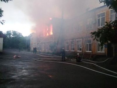 По прибуттю встановлено, що горить близько 300 м2 покрівлі, 100 м2 перекриття будівлі над актовим залом, меблі та внутрішнє оздоблення в ньому. О 19:35 пожежу локалізовано та о 20:30 – ліквідовано. Травмованих та загиблих не виявлено.