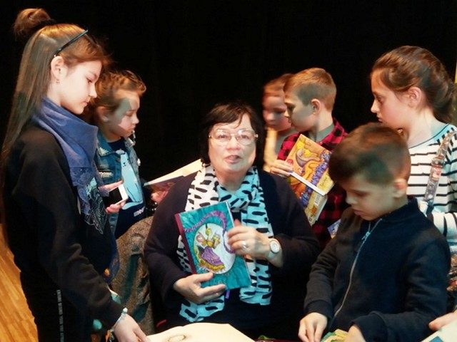 – Так, любила. І трохи згодом, аби пояснити вам, як я малюю, пропоную побитися об заклад, чи зможу я, даючи автограф, за 30 секунд намалювати свій автопортрет. (Насправді, після спілкування з дітьми пані Леся за 30 секунд намалювала кумедну ворону, відтворюючи так своє прізвище. – Р.Л.)