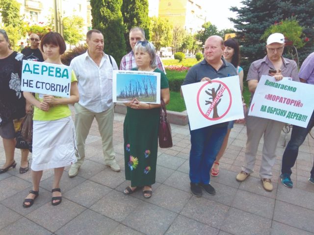Часом раніше біля житлового будинку №7 на вулиці Соборній працівники підприємства «Єлизавета» спиляли три пірамідальні тополі, аби приватний бізнесмен побудував магазинчик, а жителі міста ще й за це заплатили своїми податками.