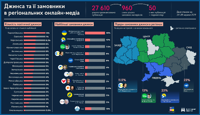 За даними дослідження ІМІ, найбільше в онлайн-ЗМІ Кропивницького джинсували місцеві кандидати мажоритарники. Кількість таких публікацій склала 61% від загальної кількості матеріалів “джинси”.