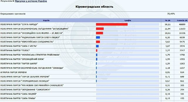 | % опрацьованих протоколів по Україні | 35.51 |