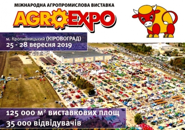 Нагадаємо, Міжнародна агропромислова виставка «AGROEXPO» у 2019 р. відбудеться на Кіровоградщині вже всьоме. Виставка входить в десятку найкрупніших агропромислових виставок Європи, її площа становить 125 000 м². Цього року виставка пройде з 25 по 28 вересня.