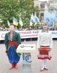 А розпочали їх співаки муніципального молодіжного хору «Сріблясті голоси», які виконали нову пісню «Наше місто». Далі міський голова Андрій Райкович привітав кропивничан з цим святом. За ним слово взяла виконуюча обов’язки голови ОДА Світлана Лобанова. Вітальний лист надійшов і від спікера ВР Дмитра Разумкова.
