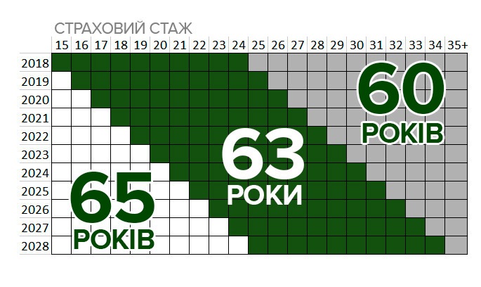 Умовою для цього є досягнення пенсійного віку, передбаченого ст. 26 Закону України «Про загальнообов’язкове державне пенсійне страхування», наявний страховий стаж для чоловіків – 35 років, для жінок – 30 років роботи у закладах та установах державної або комунальної форми власності на посадах, які дають право на призначення пенсії за вислугу років, а також – не отримання до цього жодного виду пенсії.