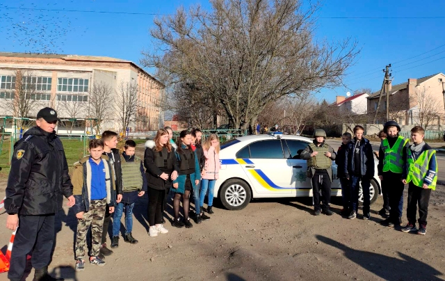 Наприкінці зустрічі школярі мали можливість оглянути поліцейський автомобіль, а також приміряти спеціальні засоби захисту, які правоохоронці використовують під час несення служби.