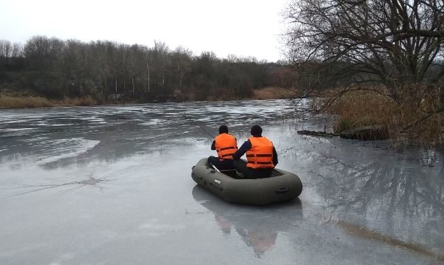 Бійці 25-ї ДПРЧ м. Новомиргород дістались на рятувальному човні до місця пролому покритого кригою ставка та витягнули тіло.