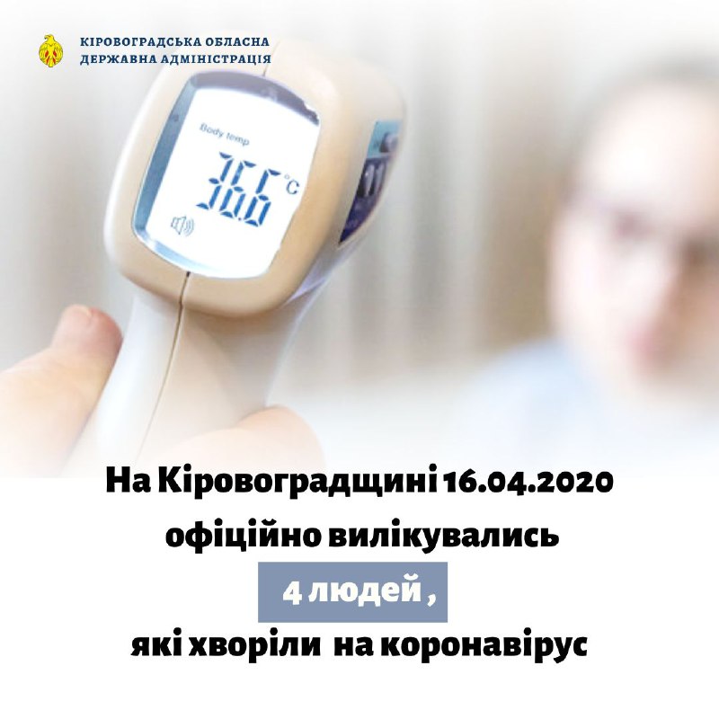 Четверо мешканців Кіровоградщини вилікувались від коронавірусу. Одужання підтвердили результати ПЛР-тестування.