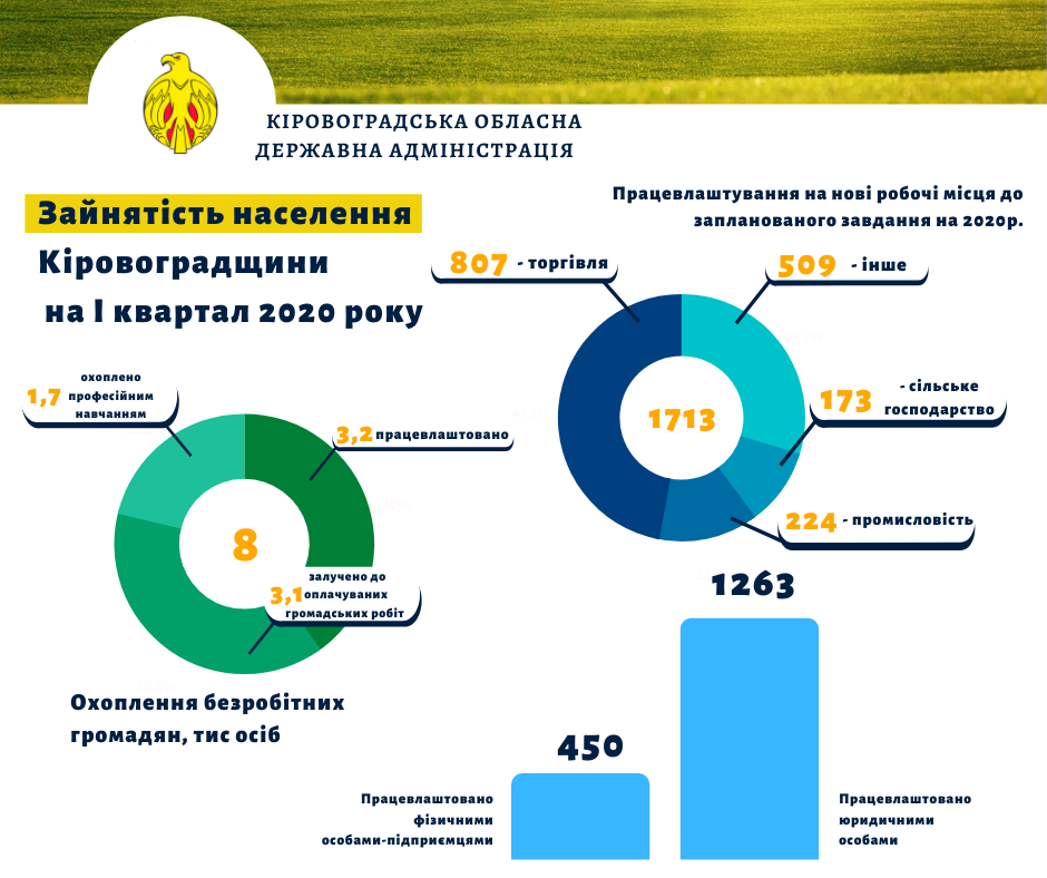 «З початку року в області працевлаштувались 3,2 тисячі безробітних громадян на вакантні місця. Ще 1,7 тисячі зайняли нові робочі місця. Серед них найбільше працевлаштованих у галузях торгівлі, промисловості та сільського господарства», – зазначили в департаменті.