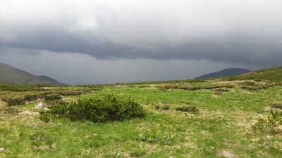 Ми майже впорались – групі не вистачило півгодини, аби схилом ущелини зійти до озера. За кілька хвилин нас вже охопила молочна стіна, яка почала бризкати рідкими краплями дощу і блимати спалахами електричних зарядів. Від групи відстали двоє учасників, які сподівались, що решта встигне зійти траверсом до місця стоянки і сховатись від шторму. Для мене й мого товариша (які й відстали) досвід грози на хребті був першим, тому мусили імпровізувати. Ми спробували утворити такий собі кокон з верхнього шару нашого намету, сховатись під нього разом із речами. Далі мали просто втримати наш захист і намагатись не намокнути. Вітер тріпав тканину, немов пес ганчірку, а ми рахували секунди між спалахами блискавки до громового відгуку. Три секунди – напружились, вісім – можна посміхнутись. Ця халепа тривала вже понад дві години, коли ми зрозуміли, що дощ не вщухне і варто таки йти далі.