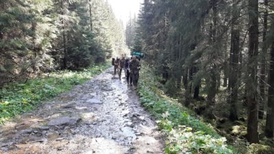 Нам потрібно було розвідати маршрут, який би дозволив максимально занурити учасників в гірську мандрівку і дав можливість оптимізувати транспортні витрати. Справа в тому, що транспорт до передгір’я Карпат – найвитратніша складова нашого проєкту. Найманий транспорт – це клопітно і дорого. Тому ми постійно випробовуємо нові способи. Цього разу ми скористались транспортом учасників, яким доїхали до місця виходу групи. Відповідно й мали повернутись до того ж місця. У кільцевому маршруті з ночівлями є своя специфіка – треба розрахувати переходи і стоянки, визначити відстані приблизно порівну на кожен день. Отже роботи зі складання маршруту було достатньо. Саме його складність і визначила склад групи. Першоходів не брали, в групі всі були з гірським досвідом. Майже всі в групі були знайомі між собою, і злагодження на маршруті було не потрібне. Натомість кожен мав знайти своє місце серед інших, взяти відповідальність за певний обсяг робіт, визначитись з власною стратегією поведінки на маршруті. Психологічною метою цього туру можна було вважати самоорганізацію в умовах часткової невизначеності. Треба було розраховувати маршрут, сили, наявне спорядження – виходячи з того, що маршрут був невідомий, а відстані суттєві. А згодом до питань реагування додалась і негода, але все за чергою.