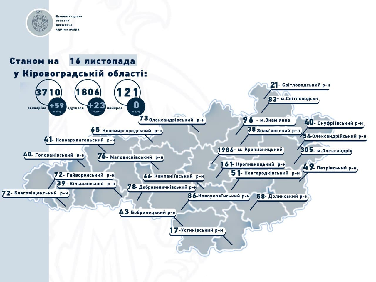 КОРОНАВІРУС НА КІРОВОГРАДЩИНІ СТАНОМ НА 16 ЛИСТОПАДА