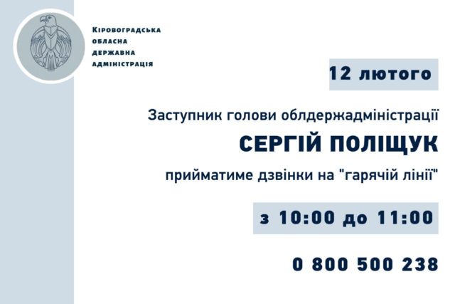 ЗАСТУПНИК ГОЛОВИ ОДА СЕРГІЙ ПОЛІЩУК ПРИЙМАТИМЕ ДЗВІНКИ ВІД ЖИТЕЛІВ КІРОВОГРАДЩИНИ