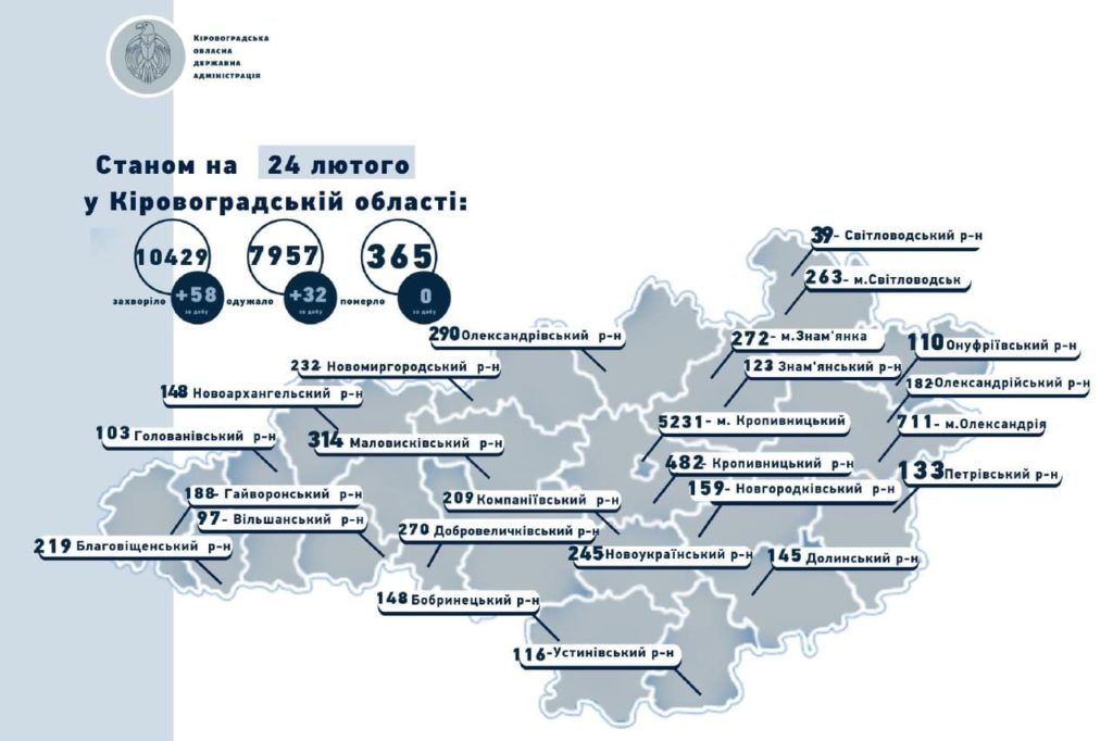 КОРОНАВІРУС НА КІРОВОГРАДЩИНІ СТАНОМ НА 24 ЛЮТОГО