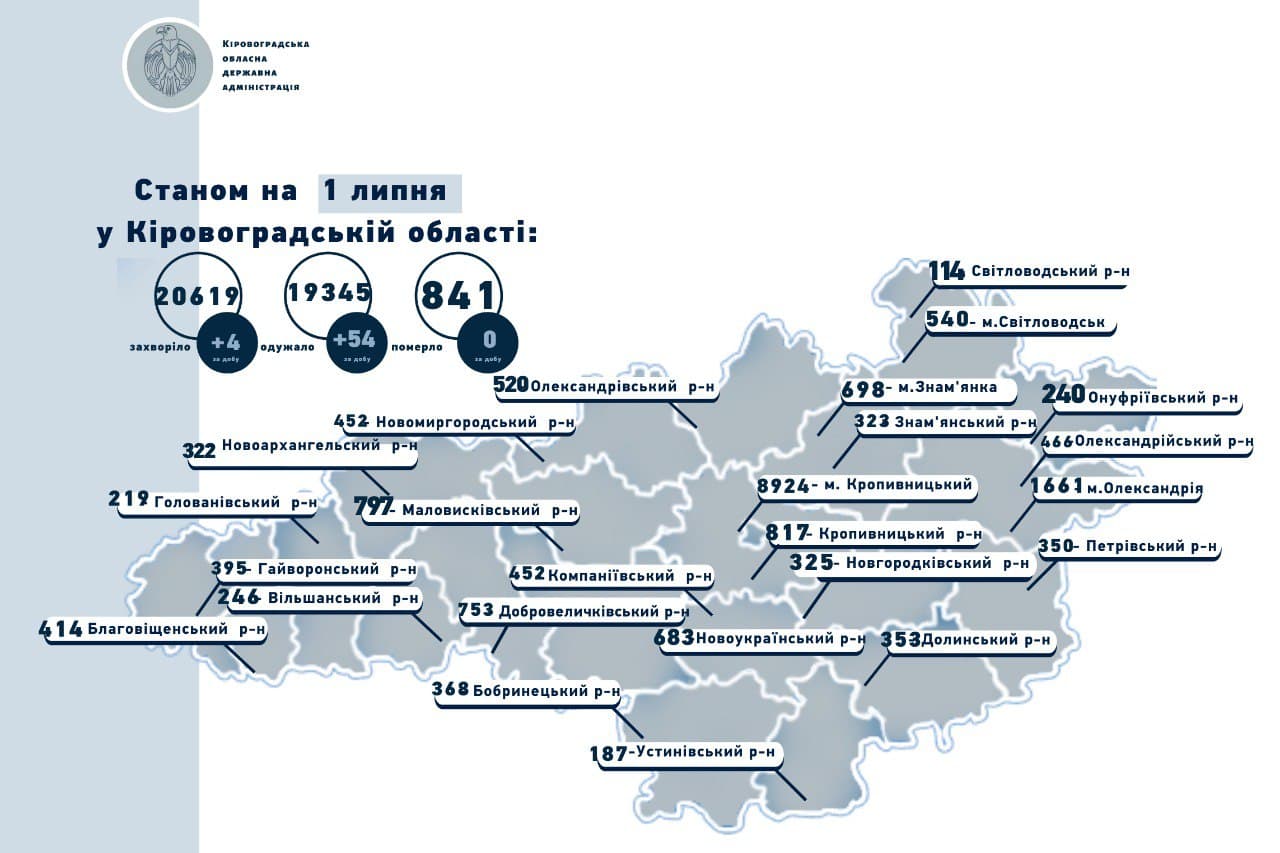 КОРОНАВІРУС НА КІРОВОГРАДЩИНІ СТАНОМ НА 1 ЛИПНЯ