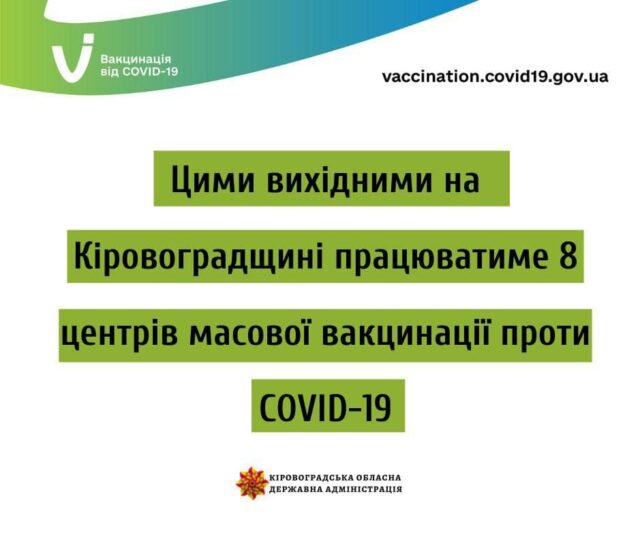 Цими вихідними на Кіровоградщині працюватиме вісім центрів масової вакцинації.