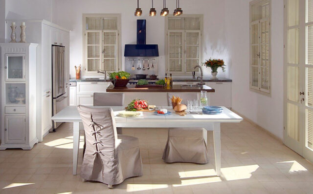 - на кухонні меблі традиційно обирають знімні накидки на табуретки, що перетворюють досить жорсткий стілець на дуже комфортне м’яке місце для сидіння.