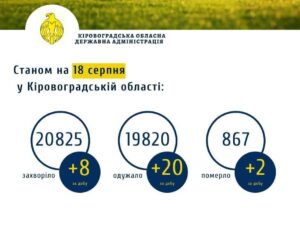 “Ковідна” статистика області за останню добу: 8 захворіли, 20 одужали, 2 померло.