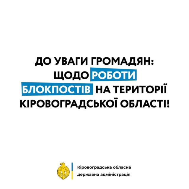 ДО УВАГИ ГРОМАДЯН: ЩОДО РОБОТИ БЛОКПОСТІВ НА ТЕРИТОРІЇ КІРОВОГРАДСЬКОЇ ОБЛАСТІ!