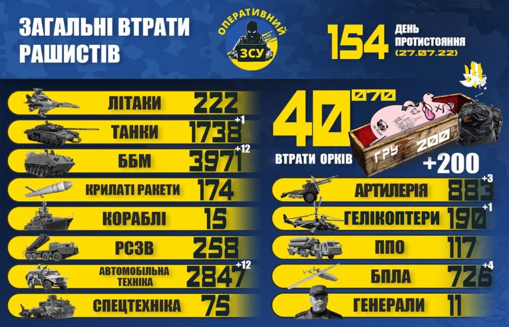 ЗАГАЛЬНІ БОЙОВІ ВТРАТИ ВОРОГА З 24.02 ПО 27.07 27.07.2022 0 677 views Генштаб ЗСУ оприлюднив свіжу інформацію щодо втрат ворога. RELATED ARTICLESMORE FROM AUTHOR ГАЗЕТА “НАРОДНЕ СЛОВО” №40 ВІД 2 ЖОВТНЯ 2025 РОКУ ГАЗЕТА “НАРОДНЕ СЛОВО” №39 ВІД 25 ВЕРЕСНЯ 2025 РОКУ ГАЗЕТА “НАРОДНЕ СЛОВО” №38 ВІД 18 ВЕРЕСНЯ 2025 РОКУ LEAVE A REPLY Cancel replyLog in to leave a comment