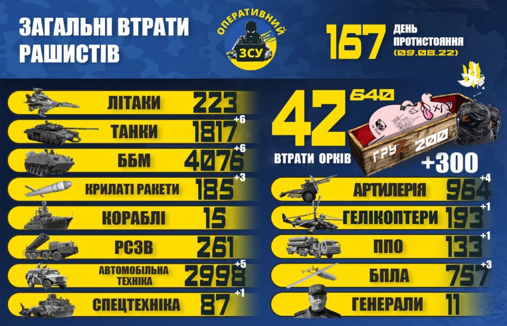ЗАГАЛЬНІ ВТРАТИ ПРОТИВНИКА СТАНОМ НА 9 СЕРПНЯ 09.08.2022 0 360 views Генштаб ЗСУ оприлюднив актуальну інформацію щодо втрат агресора з початку війни. RELATED ARTICLESMORE FROM AUTHOR ГАЗЕТА “НАРОДНЕ СЛОВО” №40 ВІД 2 ЖОВТНЯ 2025 РОКУ ГАЗЕТА “НАРОДНЕ СЛОВО” №39 ВІД 25 ВЕРЕСНЯ 2025 РОКУ ГАЗЕТА “НАРОДНЕ СЛОВО” №38 ВІД 18 ВЕРЕСНЯ 2025 РОКУ LEAVE A REPLY Cancel replyLog in to leave a comment