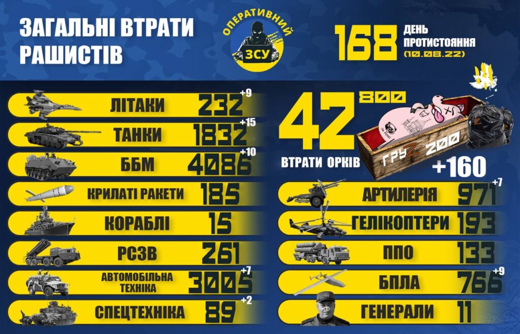 І 9 ЛІТАКІВ: ВТРАТИ ВОРОГА З 24.02. ПО 10.08 10.08.2022 0 412 views Генштаб ЗСУ оприлюднив оновлену інформацію щодо втрат росіян з початку війни. RELATED ARTICLESMORE FROM AUTHOR ГАЗЕТА “НАРОДНЕ СЛОВО” №40 ВІД 2 ЖОВТНЯ 2025 РОКУ ГАЗЕТА “НАРОДНЕ СЛОВО” №39 ВІД 25 ВЕРЕСНЯ 2025 РОКУ ГАЗЕТА “НАРОДНЕ СЛОВО” №38 ВІД 18 ВЕРЕСНЯ 2025 РОКУ LEAVE A REPLY Cancel replyLog in to leave a comment