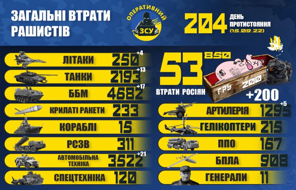 ЗАГАЛЬНІ БОЙОВІ ВТРАТИ ПРОТИВНИКА З 24.02 ПО 15.09 15.09.2022 0 304 views Відмінусовано 4 літака, 200 орків, 13 танків, 17 броньованих машин та 5 артилерійських систем. RELATED ARTICLESMORE FROM AUTHOR ГАЗЕТА “НАРОДНЕ СЛОВО” №40 ВІД 2 ЖОВТНЯ 2025 РОКУ ГАЗЕТА “НАРОДНЕ СЛОВО” №39 ВІД 25 ВЕРЕСНЯ 2025 РОКУ ГАЗЕТА “НАРОДНЕ СЛОВО” №38 ВІД 18 ВЕРЕСНЯ 2025 РОКУ LEAVE A REPLY Cancel replyLog in to leave a comment