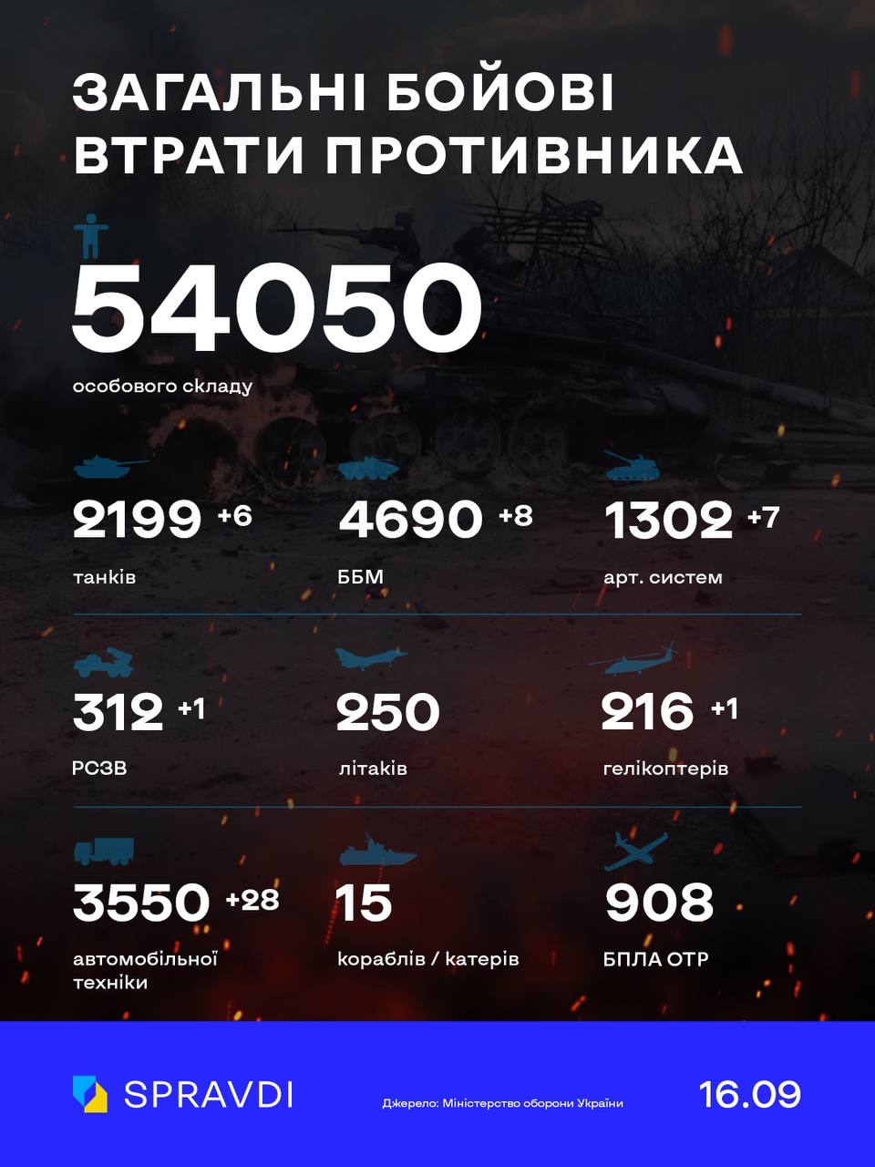 ВТРАТИ ВОРОГА З 24.02. ПО 16.09. 16.09.2022 0 374 views Генштаб ЗСУ оприлюднив оновлену інформацію про втрати ворога з початку повномасштабного вторгнення. RELATED ARTICLESMORE FROM AUTHOR ГАЗЕТА “НАРОДНЕ СЛОВО” №40 ВІД 2 ЖОВТНЯ 2025 РОКУ ГАЗЕТА “НАРОДНЕ СЛОВО” №39 ВІД 25 ВЕРЕСНЯ 2025 РОКУ ГАЗЕТА “НАРОДНЕ СЛОВО” №38 ВІД 18 ВЕРЕСНЯ 2025 РОКУ LEAVE A REPLY Cancel replyLog in to leave a comment
