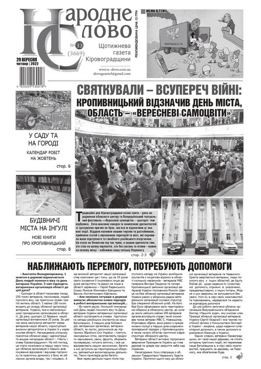 ГАЗЕТА “НАРОДНЕ СЛОВО” №33 ВІД 29 ВЕРЕСНЯ 2022 РОКУ