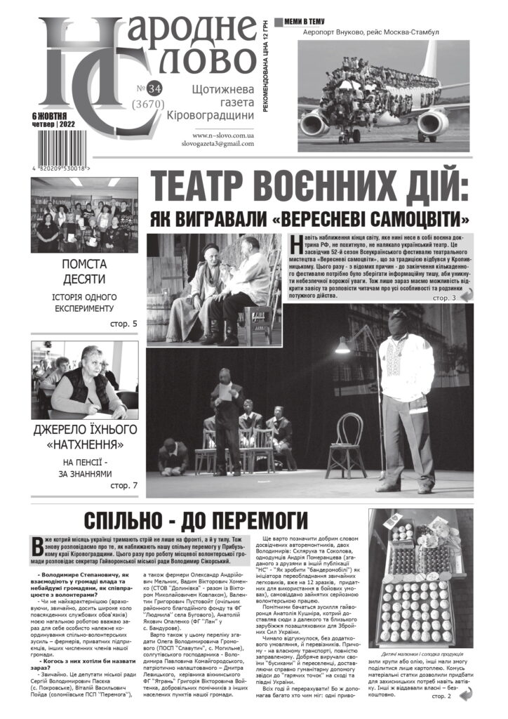 ГАЗЕТА “НАРОДНЕ СЛОВО” №34 ВІД 6 ЖОВТНЯ 2022 РОКУ