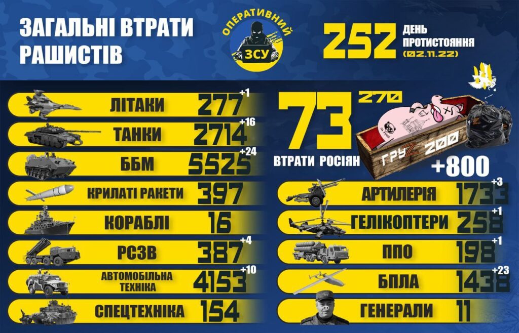 +800 ОРКІВ ТА 23 БПЛА: ВТРАТИ ВОРОГА З 24.02. ПО 02.11. 02.11.2022 0 740 views Генштаб ЗСУ оприлюднив оновлену інформацію щодо втрат ворога. RELATED ARTICLESMORE FROM AUTHOR ГАЗЕТА “НАРОДНЕ СЛОВО” №40 ВІД 2 ЖОВТНЯ 2025 РОКУ ГАЗЕТА “НАРОДНЕ СЛОВО” №39 ВІД 25 ВЕРЕСНЯ 2025 РОКУ ГАЗЕТА “НАРОДНЕ СЛОВО” №38 ВІД 18 ВЕРЕСНЯ 2025 РОКУ LEAVE A REPLY Cancel replyLog in to leave a comment
