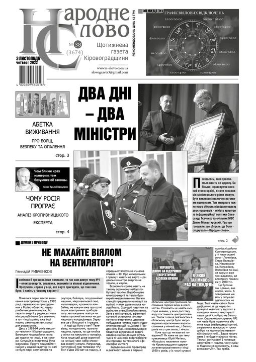 ГАЗЕТА “НАРОДНЕ СЛОВО” №38 ВІД 3 ЛИСТОПАДА 2022 РОКУ