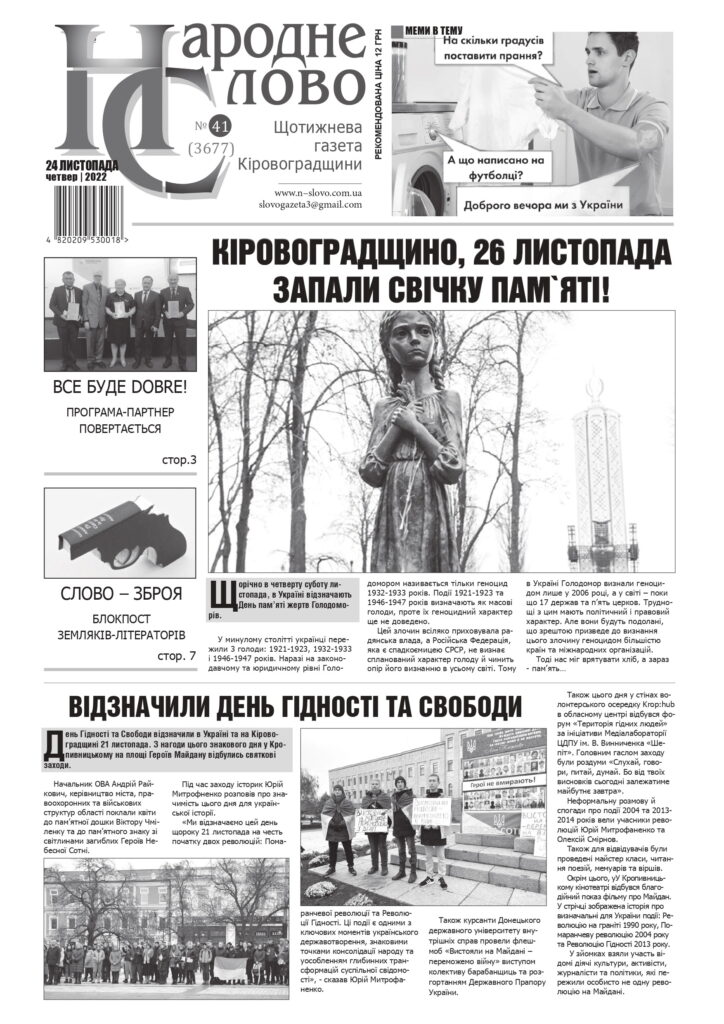 Ознайомитись з усіма матеріалами номера ви можете, передплативши газету “Народне слово” в редакції або у відділеннях “Укрпошти” (передплатний індекс 61106), чи придбати потрібний примірник у редакції за адресою: м. Кропивницький, вул. Чорновола, 46, каб. 9.