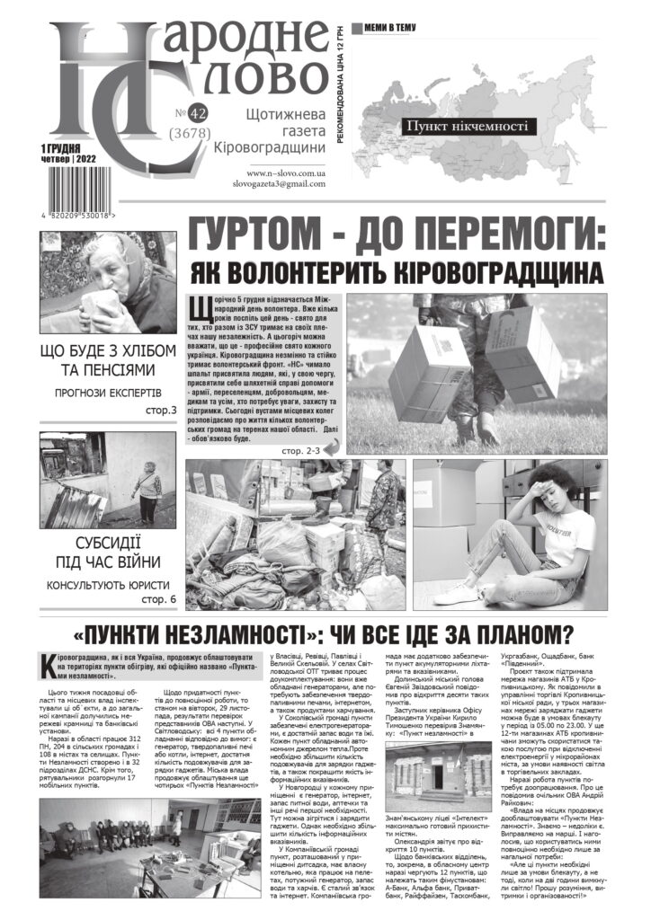 ГАЗЕТА “НАРОДНЕ СЛОВО” №42 ВІД 1 ГРУДНЯ 2022 РОКУ