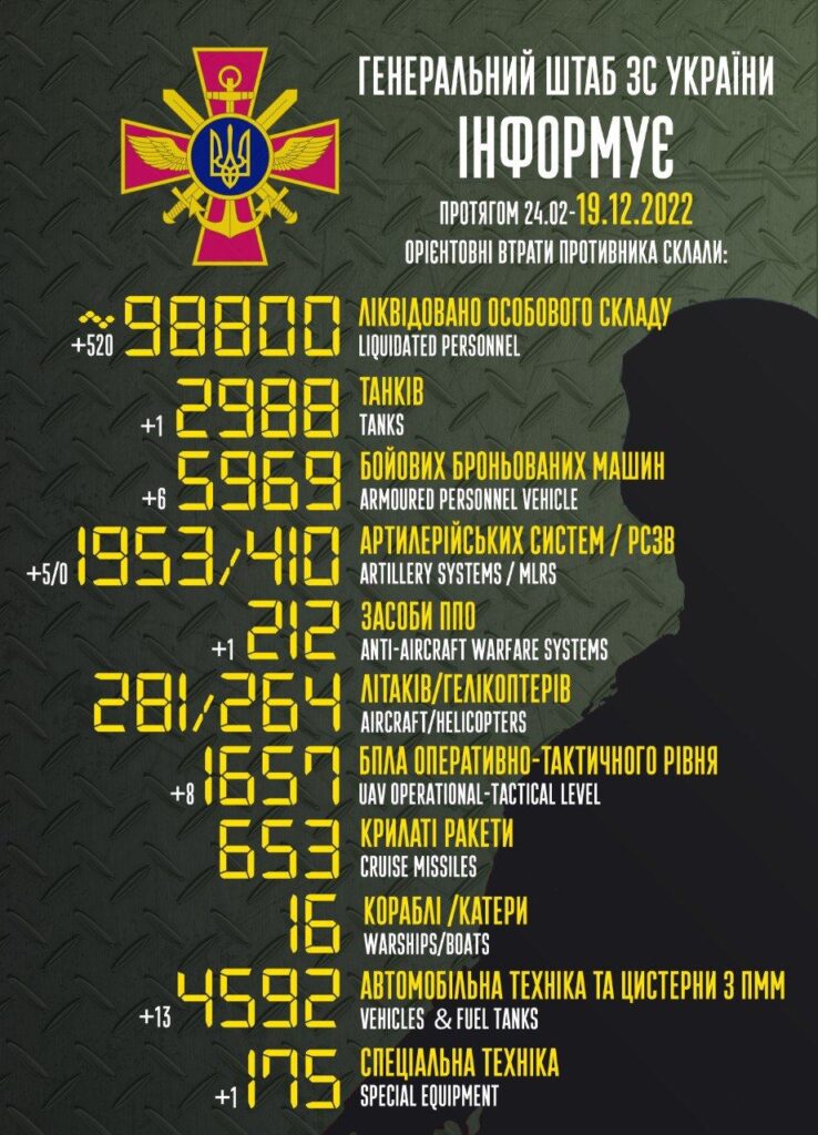 ЩЕ 520 ОРКІВ: ВТРАТИ ВОРОГА З 24.02. ПО 19.12. 19.12.2022 0 280 views Генштаб ЗСУ оприлюднив оновлену інформацію про втрати рашистів. RELATED ARTICLESMORE FROM AUTHOR ГАЗЕТА “НАРОДНЕ СЛОВО” №40 ВІД 2 ЖОВТНЯ 2025 РОКУ ГАЗЕТА “НАРОДНЕ СЛОВО” №39 ВІД 25 ВЕРЕСНЯ 2025 РОКУ ГАЗЕТА “НАРОДНЕ СЛОВО” №38 ВІД 18 ВЕРЕСНЯ 2025 РОКУ LEAVE A REPLY Cancel replyLog in to leave a comment