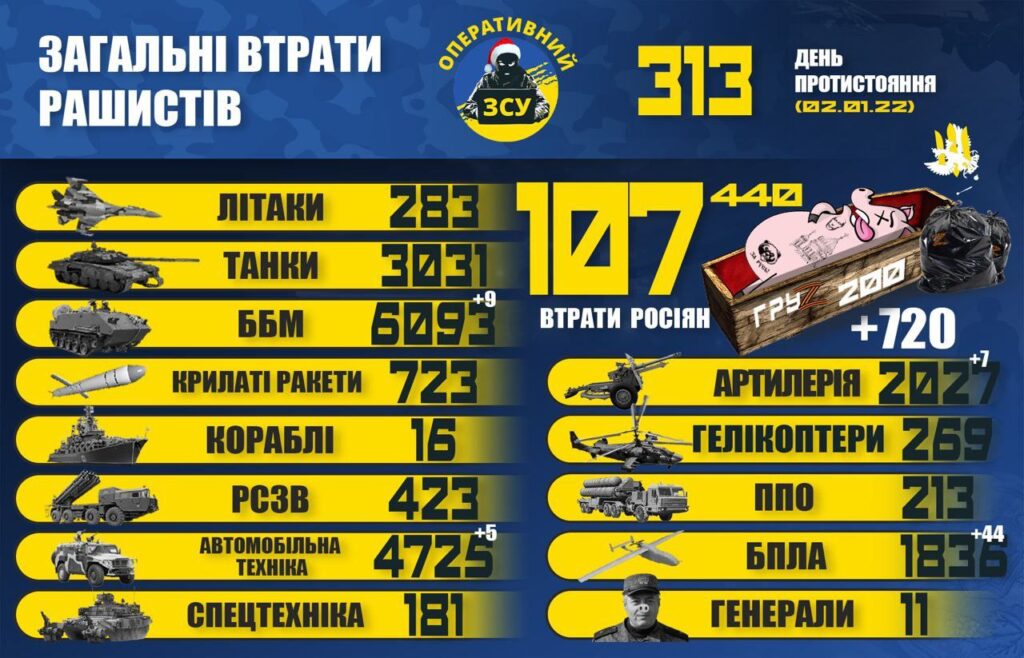 ЩЕ 720 “ХАРОШИХ РУСЬКИХ” ТА 44 ДРОНИ: ВТРАТИ ВОРОГА СТАНОМ НА 2 СІЧНЯ 02.01.2023 0 443 views Генштаб ЗСУ оновив інформацію про втрати рашистів. RELATED ARTICLESMORE FROM AUTHOR ГАЗЕТА “НАРОДНЕ СЛОВО” №40 ВІД 2 ЖОВТНЯ 2025 РОКУ ГАЗЕТА “НАРОДНЕ СЛОВО” №39 ВІД 25 ВЕРЕСНЯ 2025 РОКУ ГАЗЕТА “НАРОДНЕ СЛОВО” №38 ВІД 18 ВЕРЕСНЯ 2025 РОКУ LEAVE A REPLY Cancel replyLog in to leave a comment