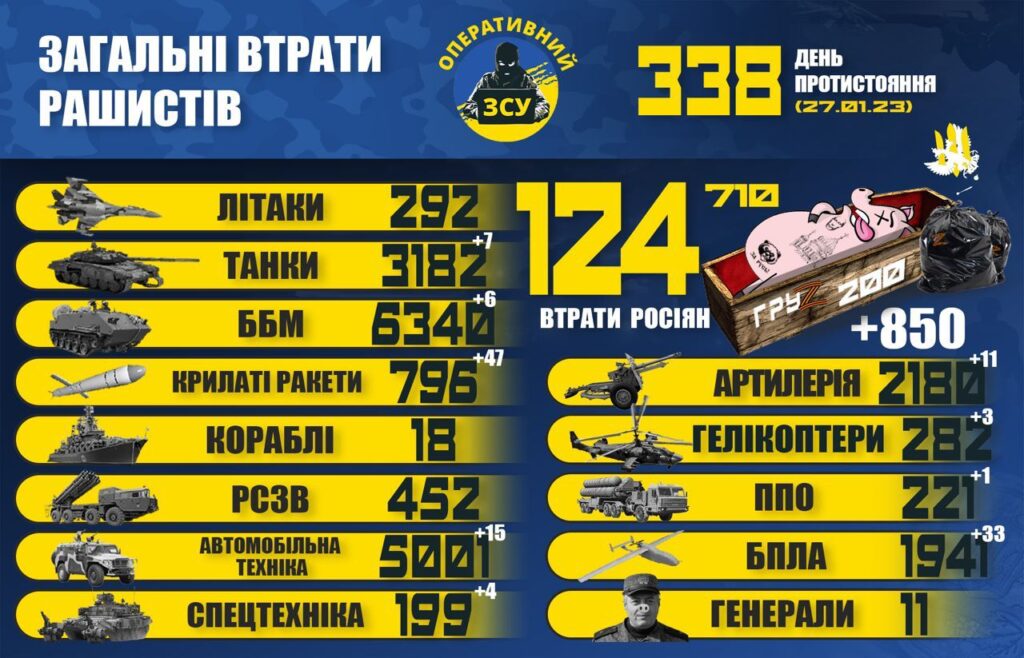 ЩЕ 47 КРИЛАТИХ РАКЕТ ТА 33 ДРОНИ: ВТРАТИ ВОРОГА СТАНОМ НА 27 СІЧНЯ 27.01.2023 0 363 views Генштаб ЗСУ оприлюднив оновлену інформацію про втрати ворога. RELATED ARTICLESMORE FROM AUTHOR ГАЗЕТА “НАРОДНЕ СЛОВО” №40 ВІД 2 ЖОВТНЯ 2025 РОКУ ГАЗЕТА “НАРОДНЕ СЛОВО” №39 ВІД 25 ВЕРЕСНЯ 2025 РОКУ ГАЗЕТА “НАРОДНЕ СЛОВО” №38 ВІД 18 ВЕРЕСНЯ 2025 РОКУ LEAVE A REPLY Cancel replyLog in to leave a comment