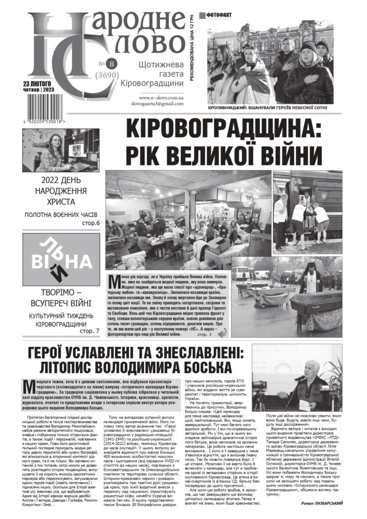 ГАЗЕТА “НАРОДНЕ СЛОВО” №8 ВІД 23 ЛЮТОГО 2023 РОКУ
