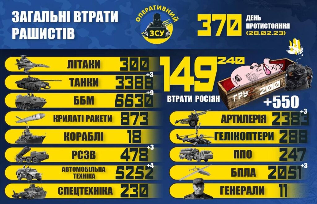 БІЛЬШЕ ПІВТИСЯЧІ “ХАРОШИХ РУСЬКИХ”: ВТРАТИ РАШИСТІВ СТАНОМ НА 28.02.23 28.02.2023 0 427 views Генштаб ЗСУ оновив інформацію про втрати рашистів. RELATED ARTICLESMORE FROM AUTHOR ГАЗЕТА “НАРОДНЕ СЛОВО” №40 ВІД 2 ЖОВТНЯ 2025 РОКУ ГАЗЕТА “НАРОДНЕ СЛОВО” №39 ВІД 25 ВЕРЕСНЯ 2025 РОКУ ГАЗЕТА “НАРОДНЕ СЛОВО” №38 ВІД 18 ВЕРЕСНЯ 2025 РОКУ LEAVE A REPLY Cancel replyLog in to leave a comment