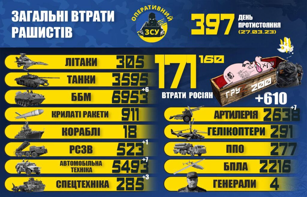 ЩЕ ПОНАД 600 “ХАРОШИХ РУСЬКИХ”: ВТРАТИ ВОРОГА НА 27.03.23. 27.03.2023 0 378 views Генштаб ЗСУ оновив інформацію про втрати рашистів. RELATED ARTICLESMORE FROM AUTHOR ГАЗЕТА “НАРОДНЕ СЛОВО” №40 ВІД 2 ЖОВТНЯ 2025 РОКУ ГАЗЕТА “НАРОДНЕ СЛОВО” №39 ВІД 25 ВЕРЕСНЯ 2025 РОКУ ГАЗЕТА “НАРОДНЕ СЛОВО” №38 ВІД 18 ВЕРЕСНЯ 2025 РОКУ LEAVE A REPLY Cancel replyLog in to leave a comment