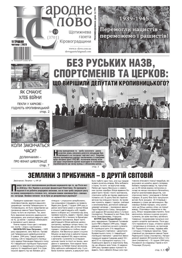 ГАЗЕТА “НАРОДНЕ СЛОВО” №19 ВІД 11 ТРАВНЯ 2023 РОКУ