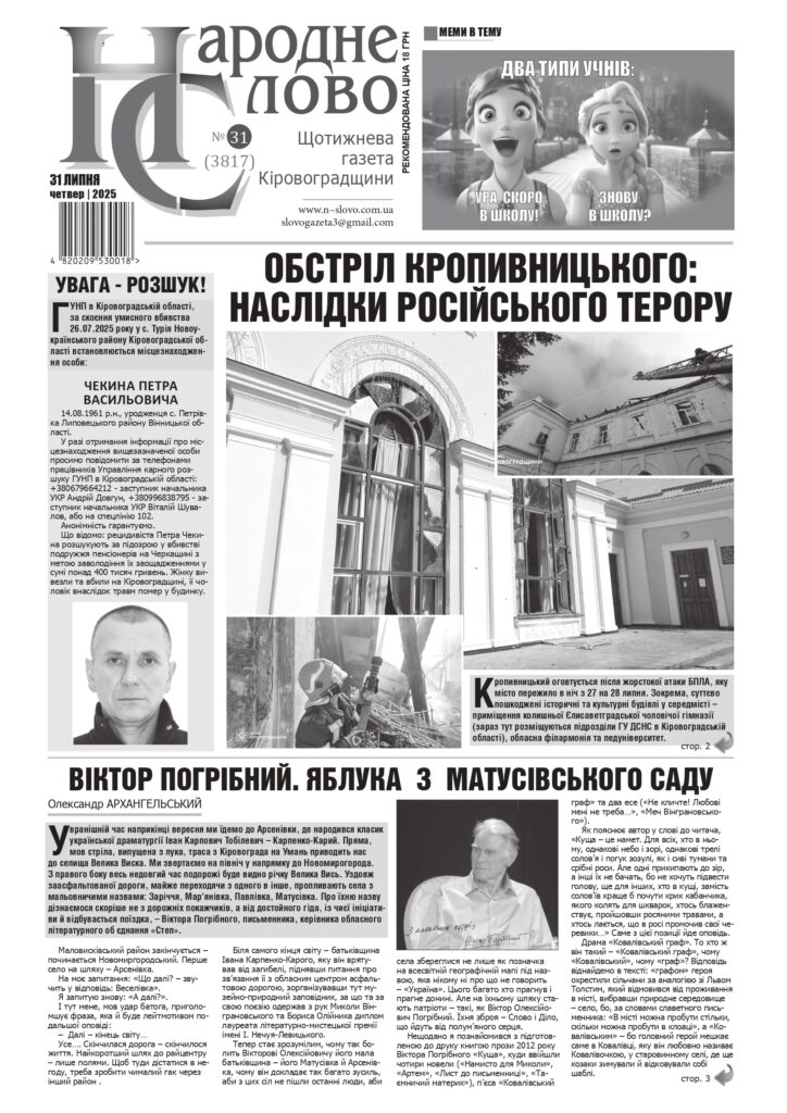 ГАЗЕТА “НАРОДНЕ СЛОВО” №31 ВІД 31 ЛИПНЯ 2025 РОКУ
